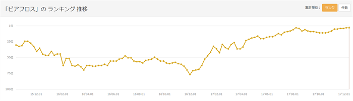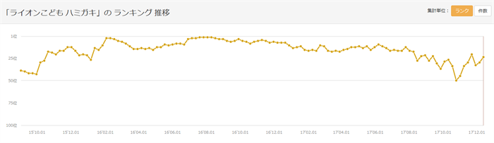 今週17位にランクインした「ライオンこどもハミガキ」は、下降傾向にありましたが、再び上昇傾向を見せています。