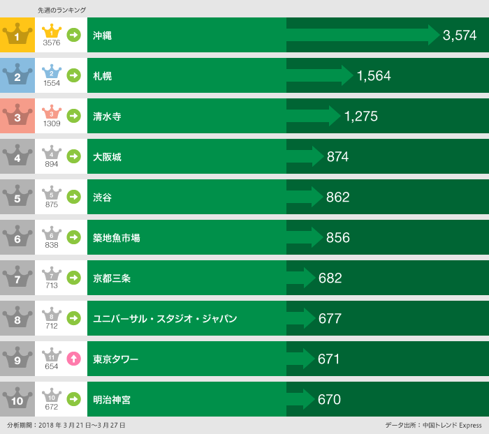 トレンドExpressが毎週行っている中国ソーシャルメディアにおける日本関連書き込み総件数ランキング。その中から「行った」、「食べた」、「〇〇したい」などインバウンドに関連したランキングをピックアップし、注目のキーワードを分析します。