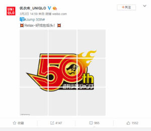 4月16日、ユニクロUTが、今年創刊50周年を迎える「週刊少年ジャンプ」とコラボレーションしたTシャツを中国でも発売開始。