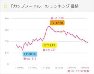 トレンドViewer買ったランキング「カップヌードル」クチコミ件数の推移