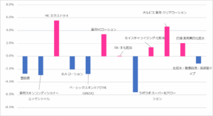 それに比して「IPSA MEエクストラ4」(IPSA)、「薬用クリアローション」(オルビス)、「薬用VCローション」(ハーバー研究所)は、その構成比を伸ばしていることが見て取れます。