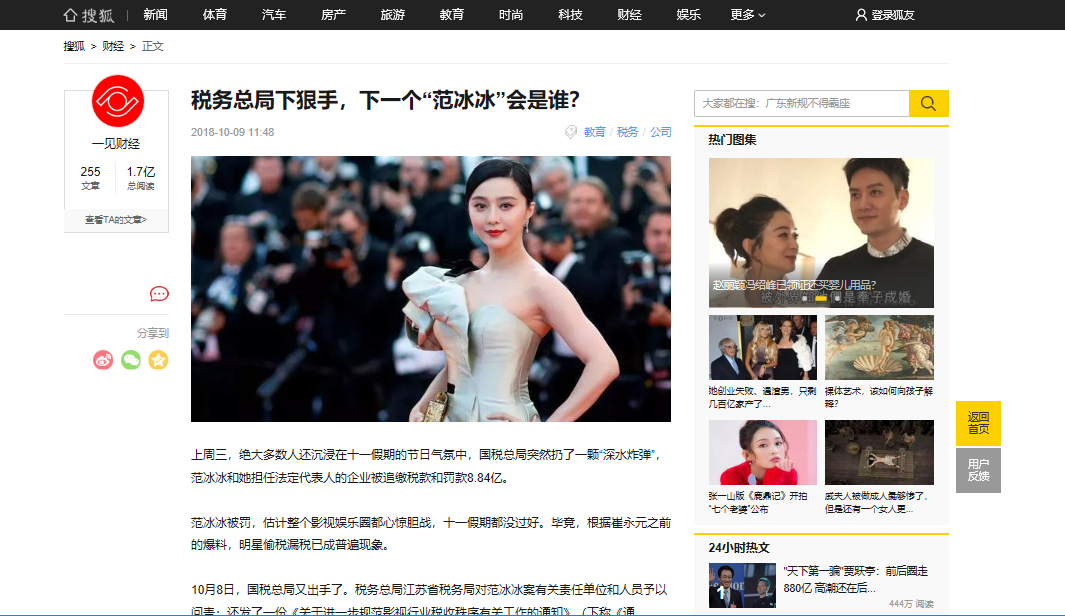 税务总局下狠手,下一个“范冰冰”会是谁?出所:捜狐(中国語)