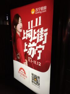 その10周年ということもあり、街は至るところで「T-Mall」、「JD.com」の2台巨頭、さらには大手家電小売でECにも力を注いでいる「SUNING」の看板が目につきました。