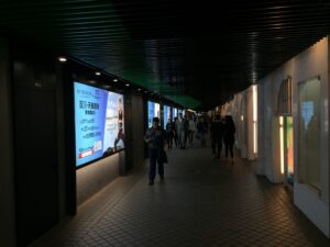 SLENDERTONEではその地下街の一角の看板スペースをジャック。通行する消費者の目に繰り返し飛び込んでくることから、その名前や商品を印象付けようという狙いです。