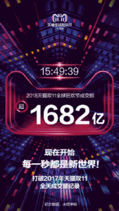 開始から15時間49分39秒:オーダー金額1682億元(約2兆800億円)を突破(日本時間11月11日17:00追記)