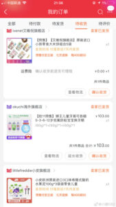 Weibo上にはダブルイレブン直後から「これ買ったよ~」というクチコミが多くアップされていますが、特にベビー用品などをアップしている投稿を注意深く見てみると、子供服などは中国国内ブランドや海外ブランドの中国国内商品などが見られますが、粉ミルクや紙おむつ、また子供用のオーラルケアなどの商品は「T-Mall Global」での購入であるケースが多く見られました。