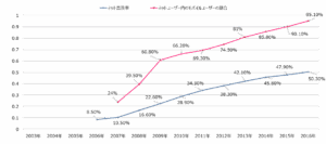 【グラフ】中国のネット普及率とモバイルユーザーの割合