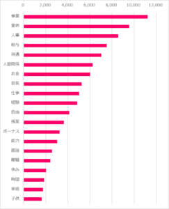 ここでは「事業」「人間関係」というキーワードが上位にランクインしています。