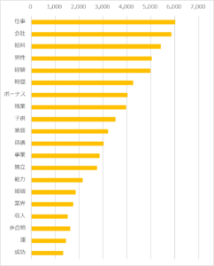 「仕事」や「会社」といったキーワードの後に「男性」という言葉が現れます。