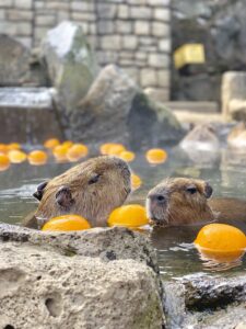 これはカピバラ柚子湯浸かり