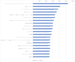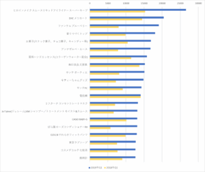 ここでも上位2商品の強さが際立ちますし、昨年から商品の入れ替わりが起こってるため、クチコミ件数も昨年に比してほぼすべての商品で大きく増加しています。