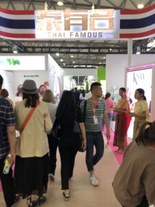 展示会場には中国現地の化粧品メーカーやOEM、周辺素材企業のみならず、中国市場で先を走っている韓国、アメリカ、ドイツ、イスラエルといった欧米諸国、さらには近年中国市場で存在感を増している「タイ」ブランドなど、この中国の巨大市場を狙う世界各国の化粧品企業がブース出展。