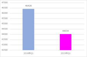 こちらも2019年Q1と2018年Q1を比較してみることにします。