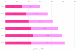 業界のレポートを見てみても、アウトドアスポーツ用品に市場規模は2012年で300億元程度であったものが、2017年で500億元超にまで成長しています。