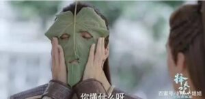 これは実は化粧品ブランド「一葉子(one leaf)」によるプレイスメント。修行している登場人物が疲労を回復させるために「一枚の葉っぱ」を顔に貼り、かつ効能をセリフで説明する、というもの。
