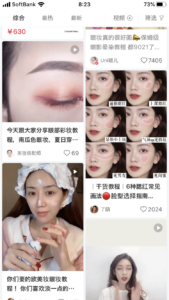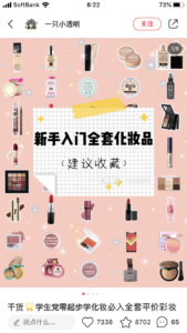 小紅書を開き、中国語でメイクアップを示す「彩粧」を検索してみると、最も多く表れるのは「入門向け」、「新手(新人)~」といった、メイク初心者向けの情報である。