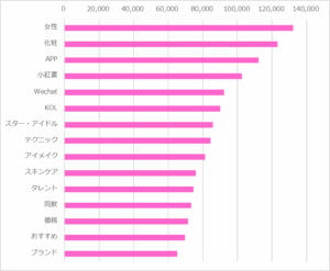 これを見ると特に利用されているのは「小紅書(RED)」と「Wechat」の2つ、同時に「KOL」や「スター・アイドル」のようなインフルエンサーに関するクチコミも多い。