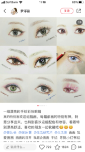 小紅書で発信されている情報、「メイク×目」だけで6万件以上の書き込みが見える。日本でもあるような「眼を大きく見せる」といったものもあるが、多くは日本では見られない「華やか」なもの。女性KOLに多く見られるような、まさに目ヂカラともいえる、はっきりとしたアイメイクが人気出ることが見える。