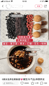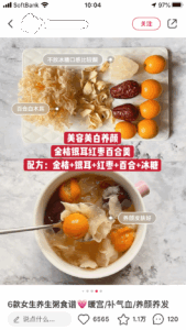 なかには女子大生が大学の宿舎(中国の大学は寄宿制)に置くべき養生食品などの紹介投稿もあり、非常に若い世代から食事によるスキンケアへの意識が高いことを感じさせる。