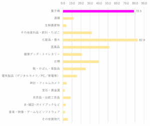 日本の観光庁が行ったアンケート調査では、981人の訪日中国人のうち実に78.9%が訪日時に「お菓子」を購入している。