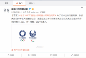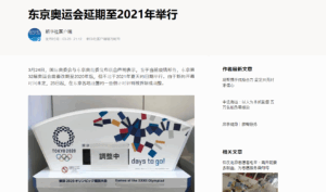 東京オリンピック延期のニュース、中国でも大手メディアが一斉に報じている。ただその内容は、延期の判断に対してなにか論評を加えるものではなく、事実を伝えるにとどまっている。