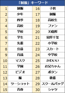 ちなみにこうした学園もののドラマやブレザータイプの制服を着用したバラエティ番組などは中国でも徐々に増えつつあるようで、「制服」に関するクチコミキーワードを見ると、下位にそうした番組に出演する俳優の名前が挙がっている。