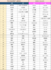 キーワード上ではあまり大きな差の見えないThe coloristとWOW COLOURの2ブランド。しかしその情報の拡散状況には大きな差が見える。