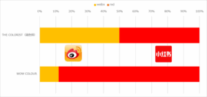 これを見ると、The coloristは小紅書とWeiboを平均的に振り分けているが、WOW COLOURは完全に小紅書集中型となっている。