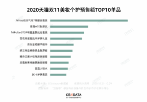 中国のシンクタンクCBN Dataが10月29日までの予約状況をまとめたデータでも、「天気丹(Cheongidan Radiant Emulsion)」をトップに、それぞれが注力した商品が上位に挙がっており、その中にSHISEIDOのultimuneも見える。