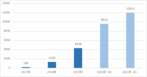 中国の調査会社である艾媒諮詢の調査では2017年当時には190億元程度であった中国ライブコマースの市場規模は拡大のスピードを速め、2020年には9610億元、2021年には1兆元を突破すると予想されている。
