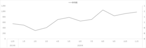 【グラフ】鐘書閣の月ごとのクチコミ件数の推移