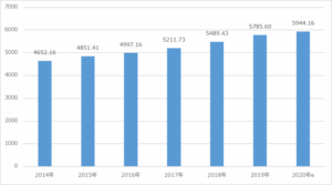 【グラフ】中国ドリンク市場2014年~2020年の規模推移(単位:億元)