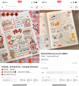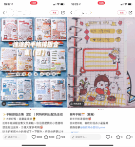 小紅書では「手帳教程」というキーワードでは2万件以上のノートがヒット。手帳達人ともいえるユーザーが、自身の「手帳ページの作り方」を動画とともにアップしており、それを参考に自分流にアレンジして楽しむことが可能だ。