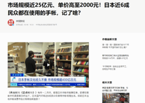 こうした若者の「手帳」文化の広がりに、中国中央電視台も「高いものでは人民元で2000元 なぜ日本人は手帳を買うのか」といったテーマの特集報道を行っている。
