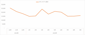 【グラフ】「スキンケア×成分」のWeiboクチコミ件数推移