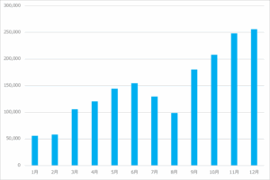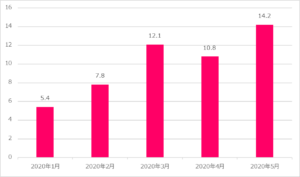 【グラフ】2020年小紅書月ごとの美容関連ノート数