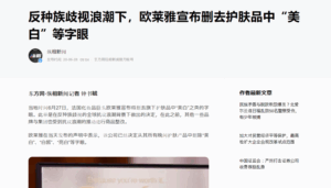 すでに欧米系ブランドロレアルでは2020年6月に「美白」といったキーワードを、スキンケア商品からは取り除くことが発表されている。
