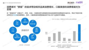 中国のシンクタンクであるCBN DataとT-Mall Globalが2019年初に共同で行なった『2019口服美容消費趨勢報告』を見ると、オンラインにおける「顔値経済(美しく見せるための消費)」において、もっとも増加しているのが服用型美容商となっている。