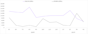 それに対してロレアルは商戦期などの波はあるものの、年間でも5万3000件、月平均で4400件程度にとどまっており、アルマーニが大きく上回っていることが見て取れる。
