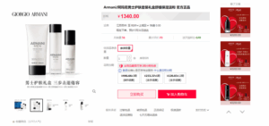 T-Mallにおけるアルマーニのメンズスキンケアセットを確認してみたが、直近の月販数は50件程度、コメントも70件程度を多くはない。