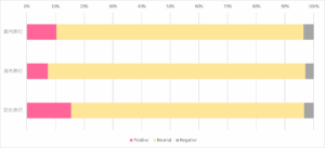 【グラフ】国内旅行、海外旅行、訪日旅行クチコミのポジネガ比率比較