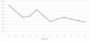 2020年7月頃には9000件近い投稿があり、12月までの平均でも6600件ほどあったが、今年に入ると平均4000件程度と下落している。