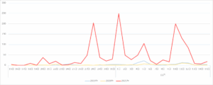 全体を見れば、ほぼすべての日で2019年、2020年を上回った件数が投稿されていることが見て取れる。
