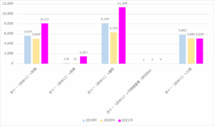 続いてそれを2019年および2020年の総数と比べてみると、中国消費業界における新たなキーワードが浮かび上がってくる。