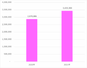 まずクチコミの総数を比較してみると2020年は約290万件、2021年は340万件余りと、約19%の増加がみられている。