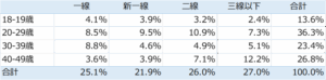 そのユーザー比率を年齢と都市別に見てみると、幅広い都市かつ年齢層に使用されている様ではあるが、二線都市の20代および三線都市以下の40代の回答率が若干高く、主に地方都市に浸透している傾向がみられるブランドである。