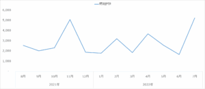 さらに2022年7月に一気に上昇がみられ、夏場のスキンケアに精簡スキンケアが取り入れられているのではと想像できる。
