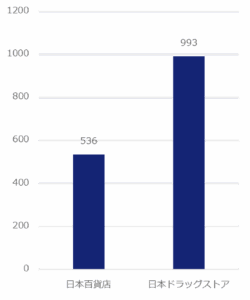 期間中、百貨店が536件だったのに対し、ドラッグストアに関する投稿は993件と大きく上回った。
